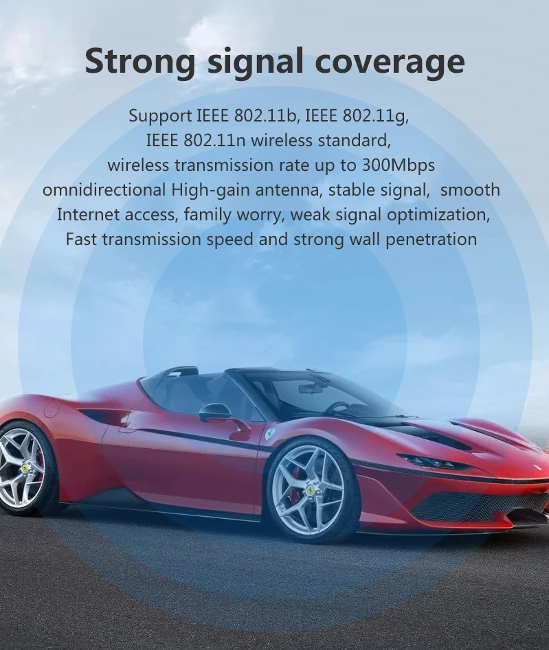 5. Беспроводной маршрутизатор высокой мощности с двойным 4G с сетевым процессором MIPS, решение для предприятия, дома, компании, офиса сети WiFi. Он совместим со стандартом IEEE 802.11b/g/n, скорость передачи данных достигает 300 Мбит/с. С внешним усилителем мощности, 1000 МВт высокой мощности, 6 шт. внешняя съемная антенна, WiFi сигнал более стабильный и более длинный диапазон.