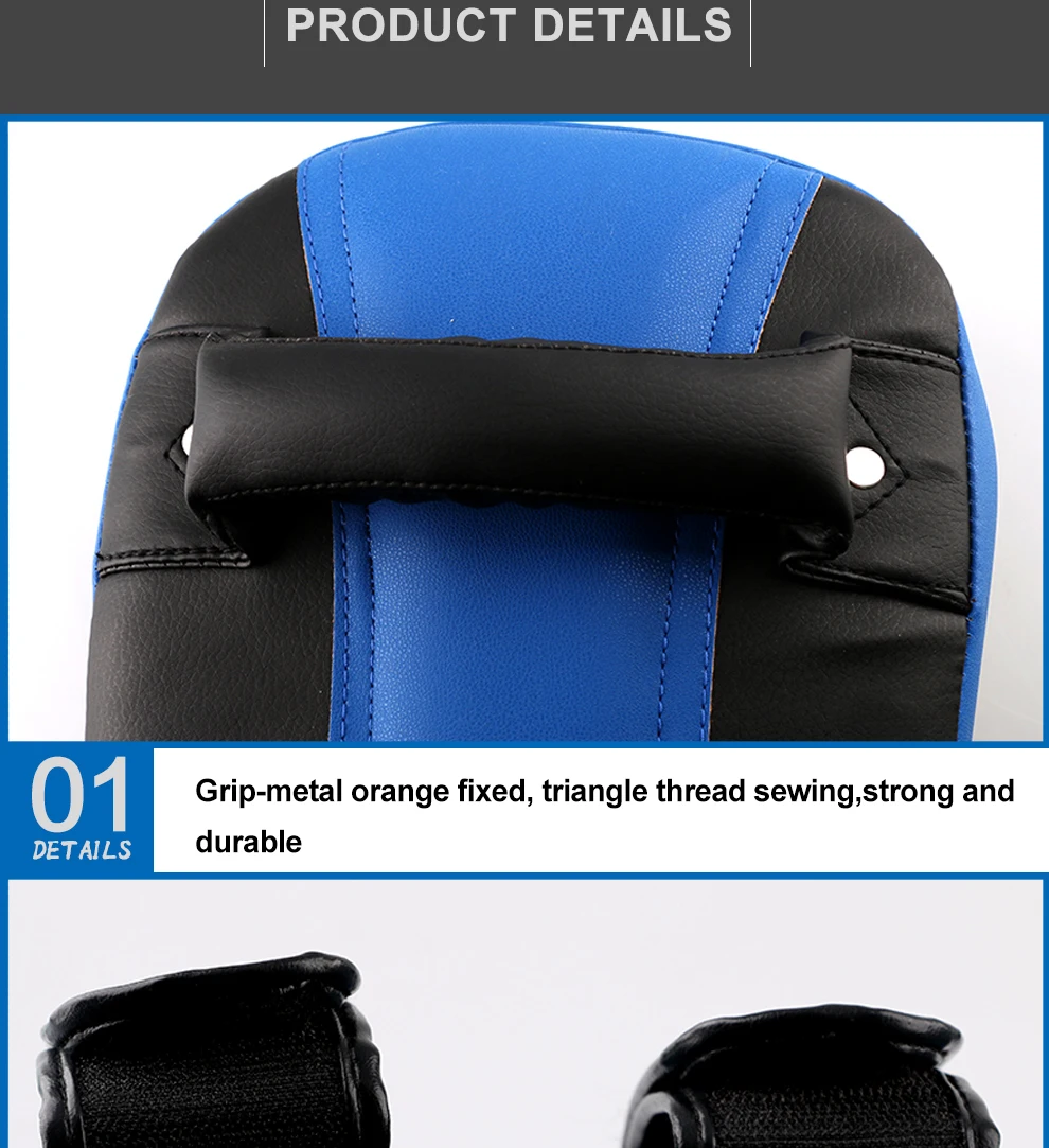 1. Специальная конструкция обеспечивает большую способность поглощать удары в анатомически правильном положении стопы 2. Меньшая площадь поверхности помогает развивать синхронизацию и заточенные комбинации скоростей 3. Легкий вес для дополнительного комфорта 4. Идеальные подушечки для полной тренировки ударов, локтей, УДАРОВ НОГАМИ и коленей 5. Липучки с заклепками, усиленными ручками 6. Плотная поролоновая подкладка для защиты и амортизации
