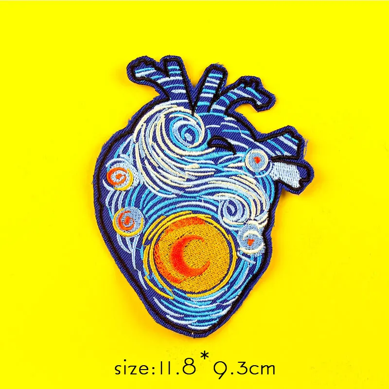 Ван Гог патч сердце патч, вышитые патчи для одежды легкий КИТ железа на заплатах на одежде DIY стикер для одежды