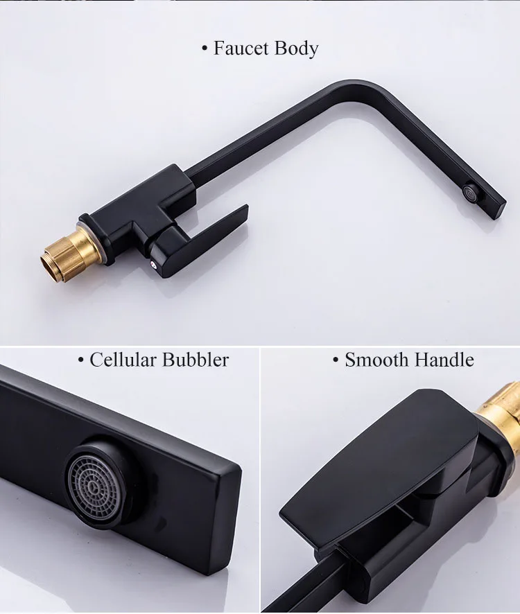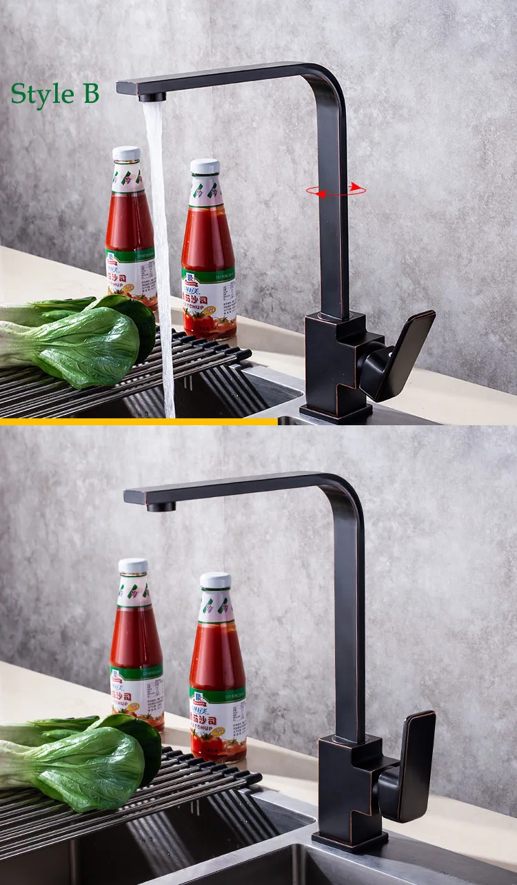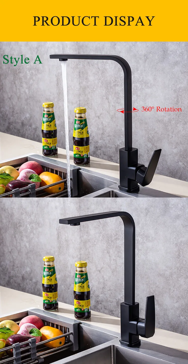 Смеситель для кухни, Современный Смеситель для мойки воды, кухонные краны, кран с одной ручкой для крепления на палубе, кухонные черные приспособления, горячие и холодные краны