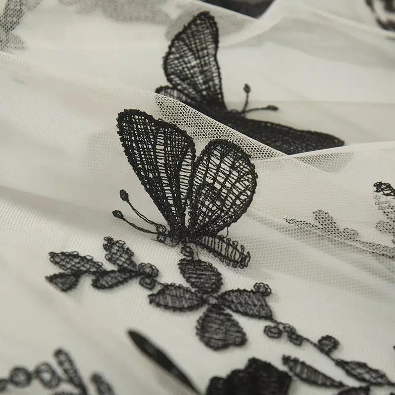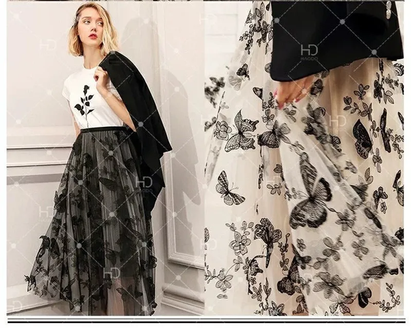1Yardx1.3M трехмерная вышивка бабочки сетчатая кружевная ткань DIY шитье свадебное платье ткань вечерние украшения для дома