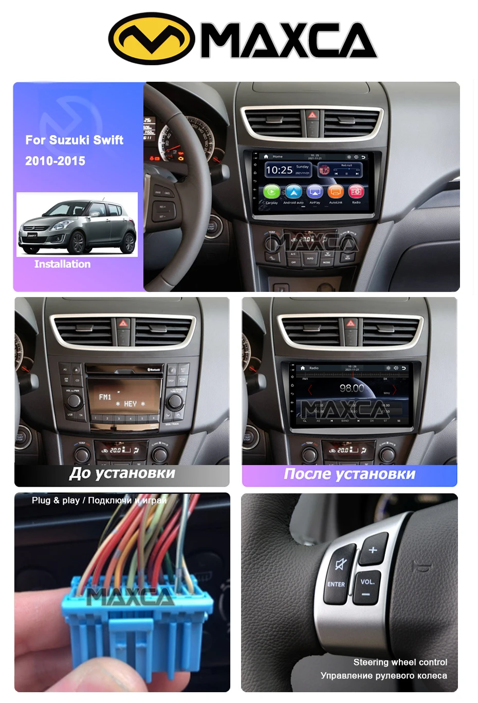 MAXCA 9-дюймовый беспроводной автомобильный радиоприемник Carplay Android для мультимедийного видеоплеера Suzuki Swift 2010 года