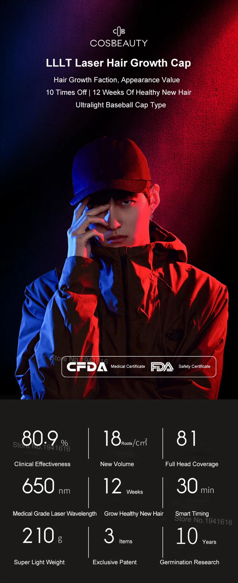 Электрический лазерный генератор волос Youpin COSBEAUTY, головной убор, шлем для роста волос LLLT, лазерная шапка для роста волос Параметры продукта Название продукта: Электрический лазерный генератор для волос COSBEAUTY Размер изделия: 203,3*178,7*87,6 мм Мощность лазера: 5 mW/piece Длина волны лазера: 650 нм ± 10 нм Состояние источника питания: мобильный источник питания (5,0 V = 2A) Подходит для окружности головы: 58-61 см Область применения: себорейная алопеция, алопеция ареата, послеродовые продукты для выпадения волос Происхождение: Китай Вес изделия: 210 г (хост) Количество лазерных ламп: 81 Режим работы: быстрая загрузка и непрерывная работа Разъем питания: USB2.0 Частота обработки: 30 минут/каждый день