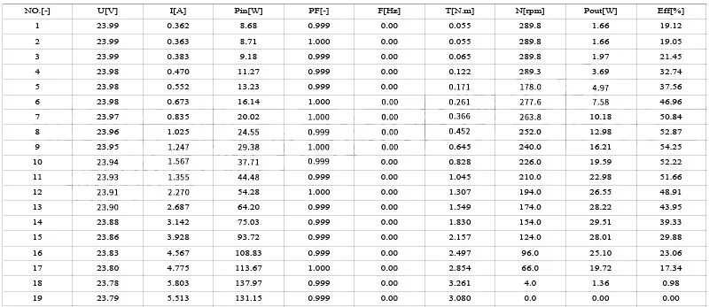 Следующие динамический отчет по испытанию 24v 56 об/мин