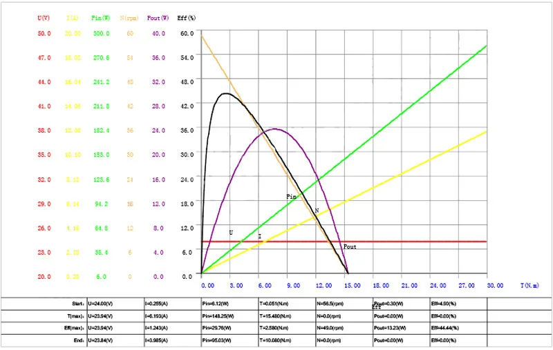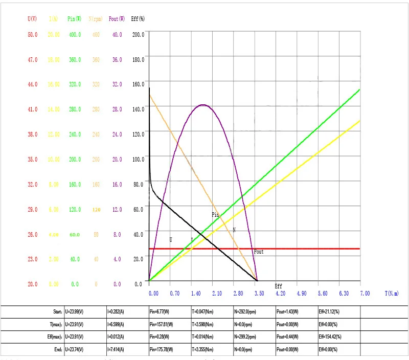 Ниже приведена таблица с указанием динамический кривой 24v 290 об/мин двигатель