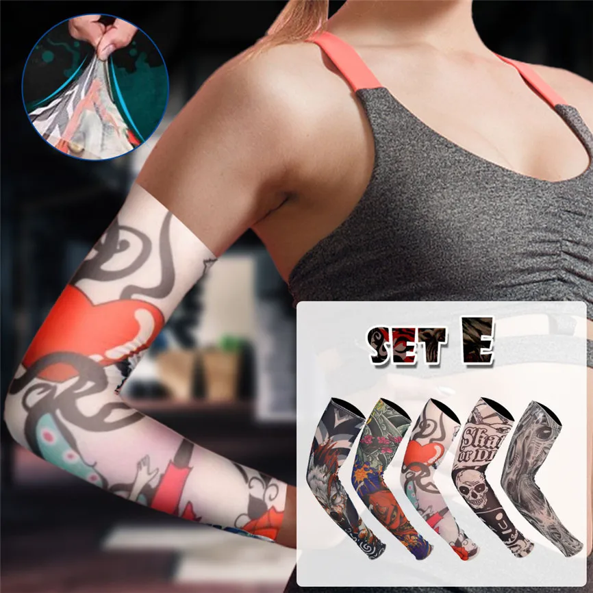 Нарукавники с охлаждающей татуировкой для баскетбола, гольфа, спорта, УФ, защиты от солнца, 5 шт.