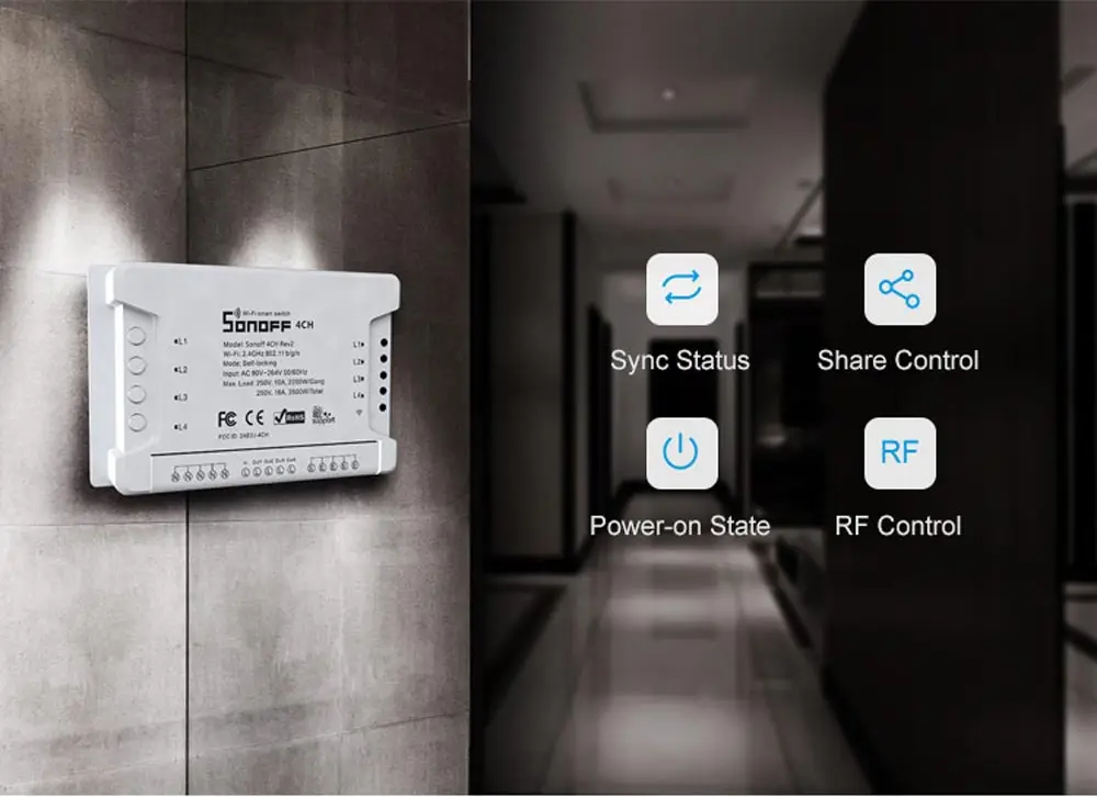 Полный контроль ваших приборов с приложением eWeLink для вашего телефона или планшета. Также каждый канал может быть включен/выключен индивидуально. Один переключатель для четырех устройств, что означает, что вы сэкономите больше денег на swicthes.