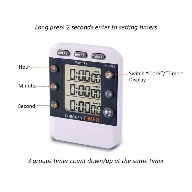 Большой ЖК-экран для 3 групп отображения цифр таймера. Легко читается. Идеально и удобно для тех, чье зрение не очень хорошо. И легко услышать сигнал тревоги из другой комнаты. Это громко, но не оглушительно