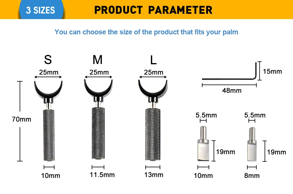 Размер S: диаметр ручки (10 мм), подходит для игроков с маленькими ладонями.