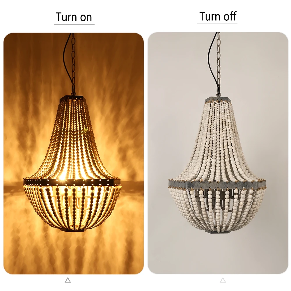 Светодиодный подвесной светильник в стиле кантри, ретро, для спальни, гостиной, украшения, классические деревянные бусины
