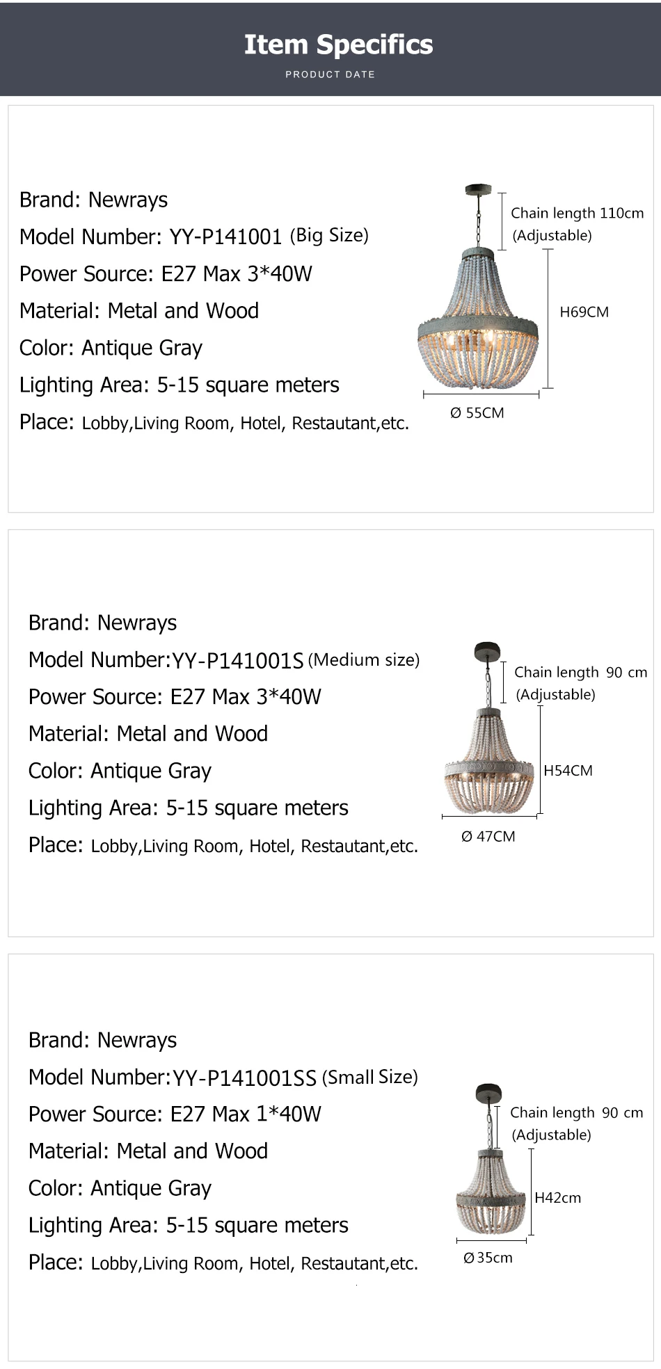 Информация о продукте ● Вес изделия: 5-10 кг ● Размеры изделия: как на фотографии ● Источник питания: E27 Max 3*40 Вт ● Напряжение: 110-240 В ● Материал: металл и дерево ● Цвет: античный серый Пожалуйста, оставьте сообщение, Вам нужен стандарт напряжения после размещения заказа Размеры изделия: диаметр 55 * h69см, в комплект не входит длина цепочки, и вы можете свободно регулировать длину цепочки, длина цепочки составляет около 90 см Пожалуйста, учитывайте небольшие ошибки в размере товара, спасибо Подробное описаниеОплата: