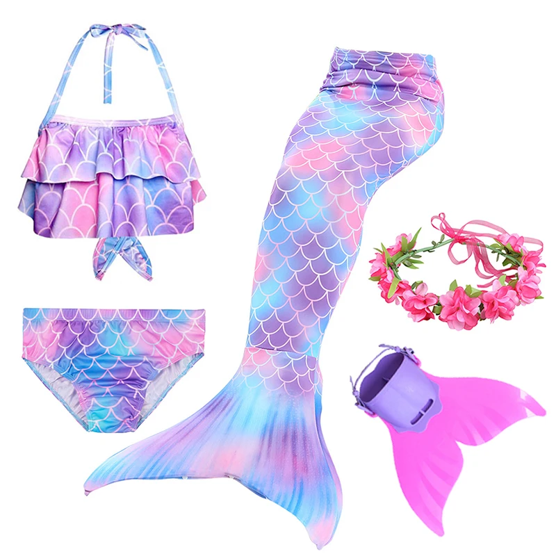 5 шт.: 1 платье с хвостом русалки + 1 бюстгальтер + 1 шорты + 1 гирлянда + 1 ластовица Monofin
