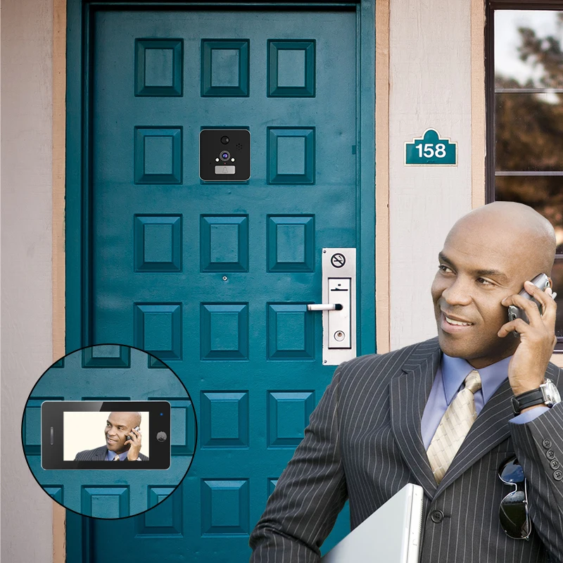 1. Wi-Fi подключение и HD глазок, удаленный домофон, подходит для IOS и android смартфонов. 2. 4,3 дюймов высокой четкости ЖК-дисплей экран 3. HD 960P изображение ультра-низкая потребеление энергии дизайн 4. 2 шт. ИК-светодиодов, поддержка 2-канального аудио с шумоподавлением 5. Автоматическое снятие изображения и видеозапись при нажатии на дверной Звонок 6. Датчик движения PIR 7. Поддержка макс. tf-карты 32 ГБ для сохранения записи видео (не входит в комплект) 8. Простая установка (нет необходимости в кабеле), просто подключение Wi-Fi