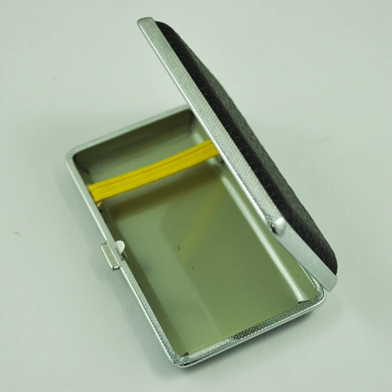 Металлическая оправа, черная поверхность из искусственной кожи, внутренний чехол имеет 2 эластичных удерживающих ремня, нажмите кнопку сбоку для более удобного открытия, надежно закройте.