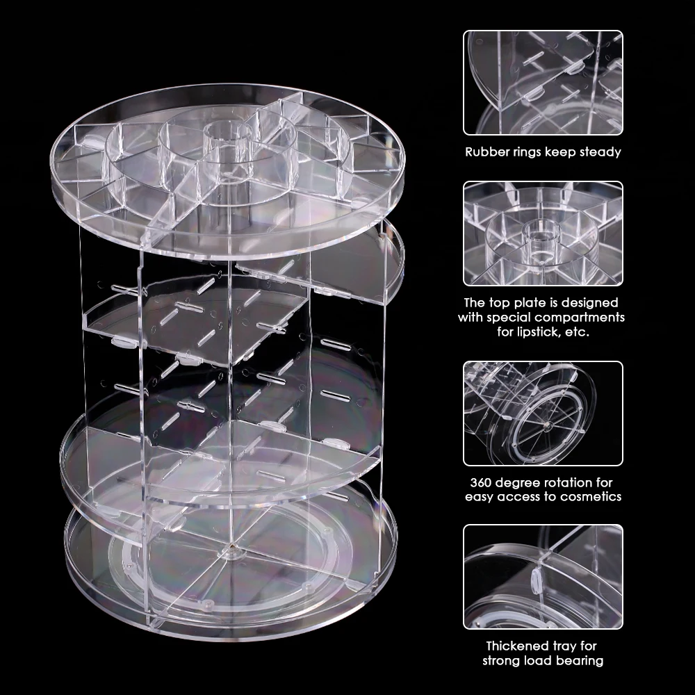 Органайзер для макияжа с вращением на 360 градусов предназначен для аккуратной организации различных косметических средств. С поворотным основанием на 360 ° вы можете мгновенно получить доступ к макияжу, который вам нужен. Небольшие отсеки для аккуратного хранения помад, теней для глаз, кистей для макияжа и многого другого. Если вы любитель красоты, или у вас есть ослепительный набор косметических продуктов, этот универсальный косметический Органайзер-правильный выбор для улучшения вашей рутины.