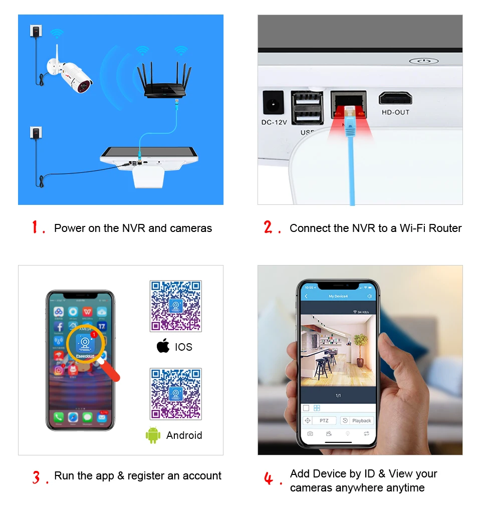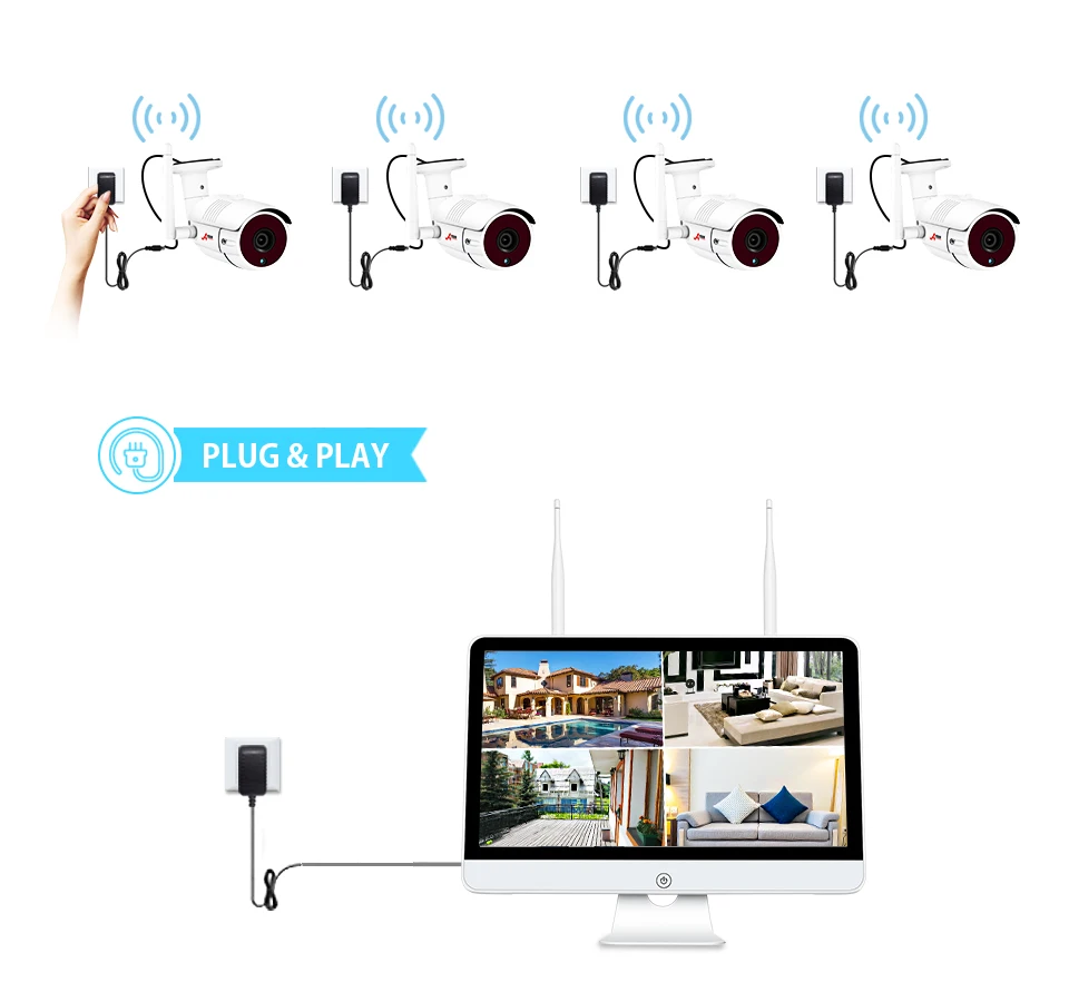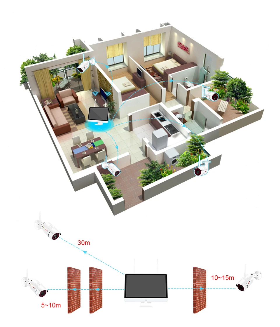 Беспроводные соединения между камерами и NVR, без сложных кабелей. Антенны расширителя диапазона гарантируют, что сигналы остаются сильными, когда вы контролируете свой бизнес или дом без проводов, до 330 футов (100 метров) на открытой местности.