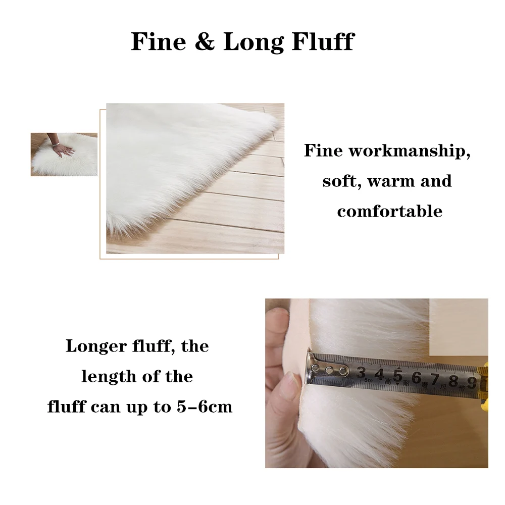 Гладкая поверхность с длинным плюшем, овечья кожа мягкая, теплая и удобная.