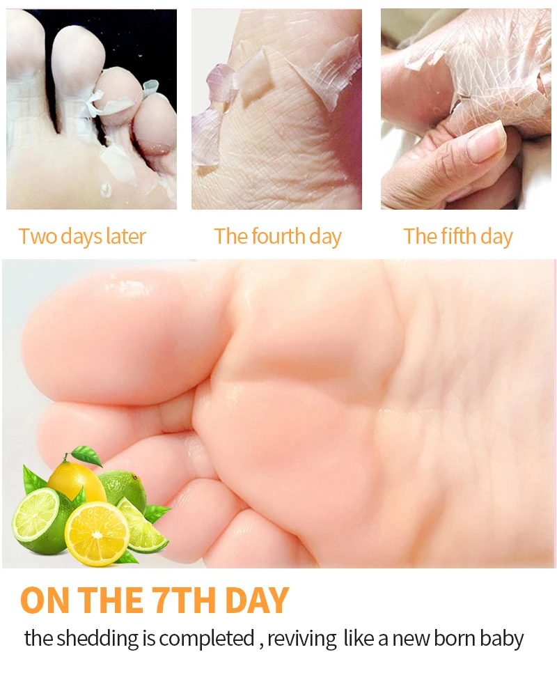 1. Вымойте и Замочите ноги горячей водой, а затем высушите ноги. 2. Используйте ножницы, чтобы вырезать Уплотнение Маски для ног посылка. 3. Носите маску для ног, мы рекомендуем носить пару нормальных носков снаружи, чтобы обеспечить достаточный контакт с эссенцией. 4. Снимите маску для ног через 35-95 минут, затем очистите ноги. 5. Большинство людей начинают очищать омертвевшую кожу после 48 часов использования, но из-за различных типов кожи кому-то может потребоваться 2-3 пары, пожалуйста, используйте маску для ног снова 48 часов позже. 6. Не используйте маску, если у вас есть активный порез или ран. 7. Мы предлагаем вам замочить ноги горячей водой после 48 часов использования.