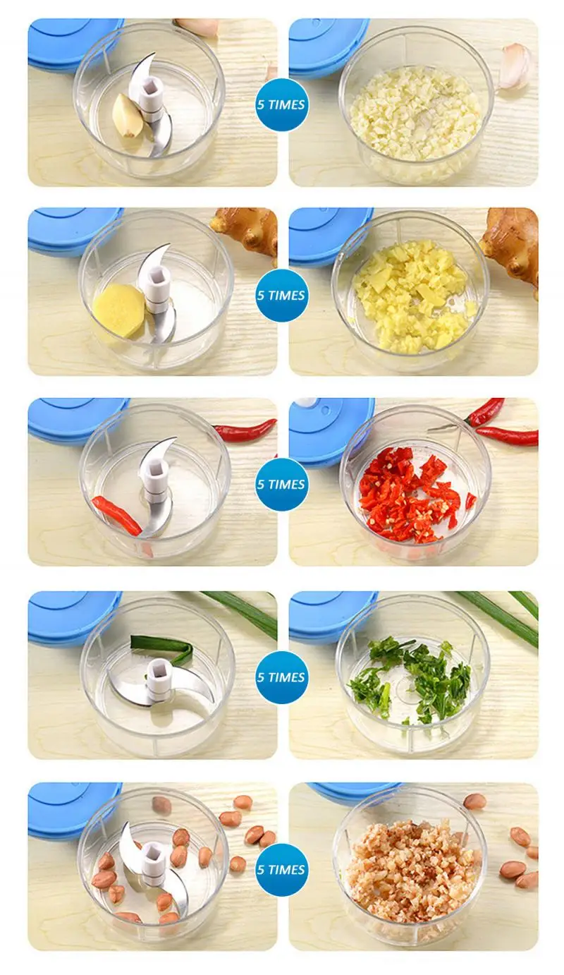 -Используется для измельчения мяса, пищевых добавок, овощей, лука, чеснока, смузи и т. д.