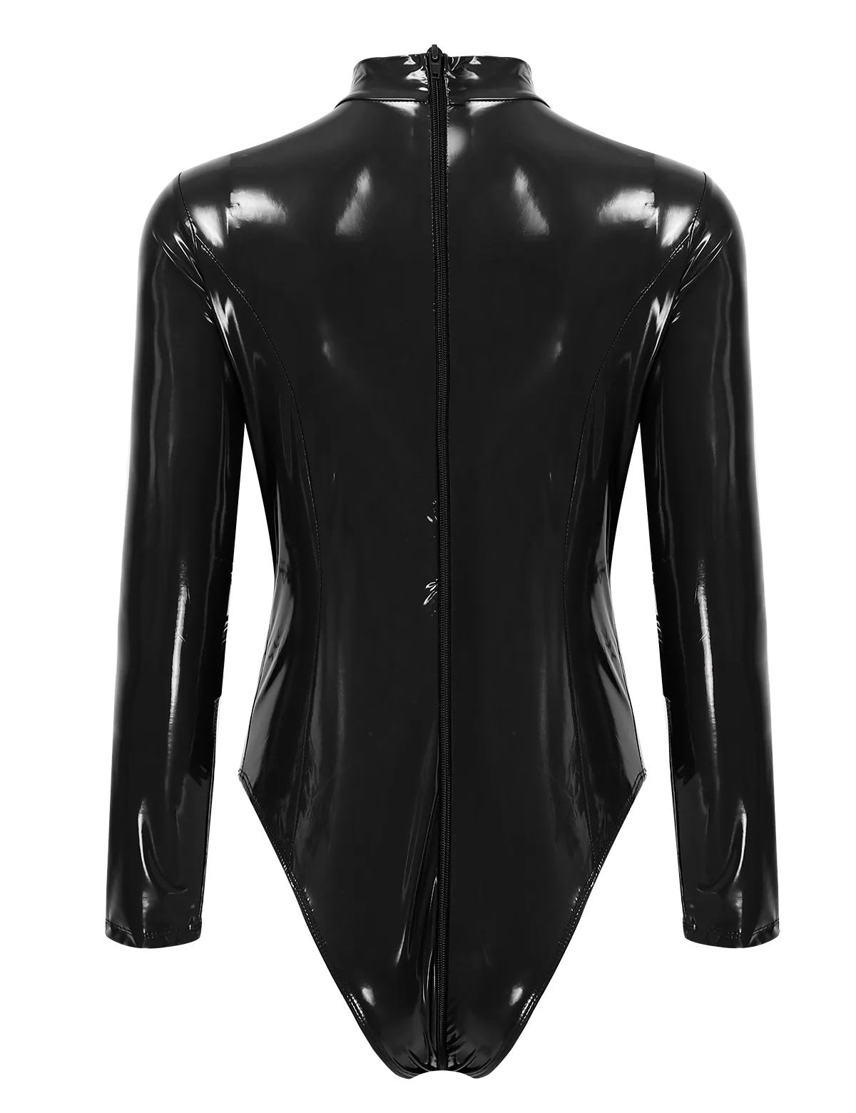 Женский цельный купальник из лакированной кожи с высоким вырезом, внешний вид с эффектом мочи
