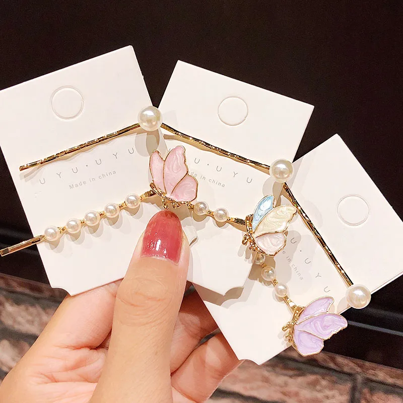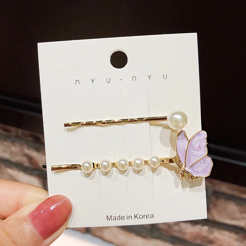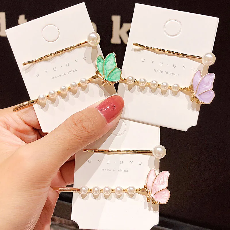 Заколки для волос 2 шт./компл., красивые заколки для волос с жемчужинами и бабочками, модные аксессуары для волос Упаковка: 2 шт./компл.