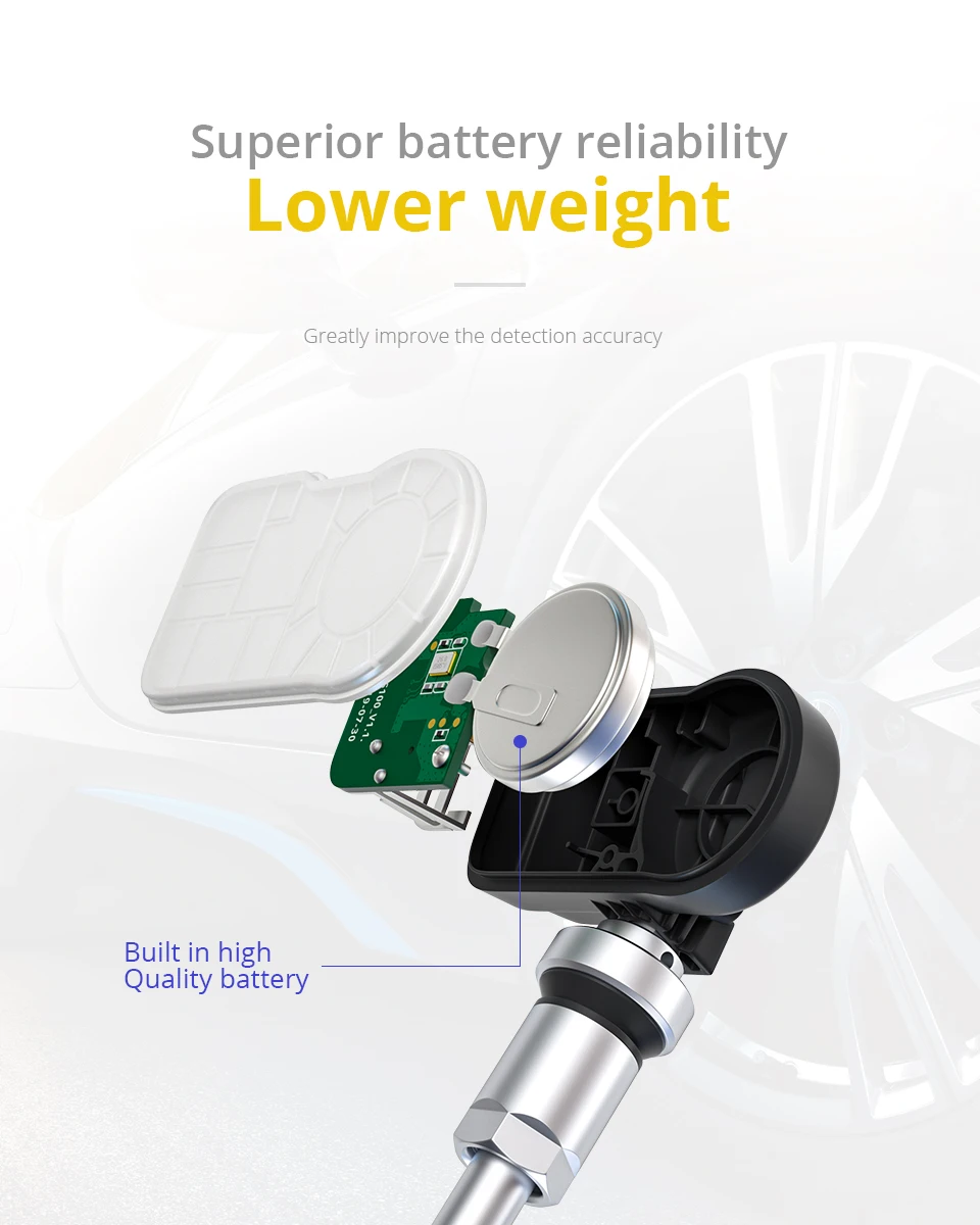 Программируемый датчик OE уровня с зажимом для системы контроля давления в шинах (TPMS) 100% Cloneable + подходит для 98% основных транспортных средств XTOOL TS100 датчик 2 в 1 (315 + 433 МГц), В качестве программируемого универсального датчика, оснащенного зажимами и оснастками, которые являются как умными, так и эффективными специально построенными для замены датчика с максимальным покрытием применения, простоты в использовании, OE-level fit, производительность и надежность, Поможет потребителям экономить стоимость диагностических работ и значительно повысить эффективность ремонта. Функция 2 в 1: только 1 датчик для обслуживания почти каждого TPMS оборудованного транспортного средства, чтобы снизить стоимость ремонта и иметь более высокую эффективность установки без необходимости повторного обучения. Mx-датчик 100% cloneable с оригинальным идентификатором датчика и помещен в то же положение. 98% охват: Благодаря последнему и наиболее комплексному покрытию 98% OE датчиков на рынке и до 90% североамериканских, европейских и азиатских транспортных средств, он почти подходит для всех типов колес на дороге. Простота в использовании: сила сигнала датчика TS100 позволяет легко программировать датчики по беспроводной сети, даже когда они уже установлены на колесе. Кроме того, уникальная конструкция клапана пресс-релиза делает ручную замену датчика гораздо проще. Прочный и прочный: оснащен автомобильным аккумулятором, сменным алюминиевым/резиновым стержнем клапана, который выдерживает холодную, горячую и стойкую коррозию, и высокоточным воздушным клапаном для предотвращения утечки воздуха, этот датчик обеспечивает превосходную стабильность и производительность. Гарантия: XTOOL гарантирует, что датчик не имеет дефектов материала и производства в течение 24 месяцев или в течение 24000 км. Каждый датчик помечен серийным номером для отслеживания качества датчика с завода, чтобы гарантировать, что только самые качественные детали установлены.