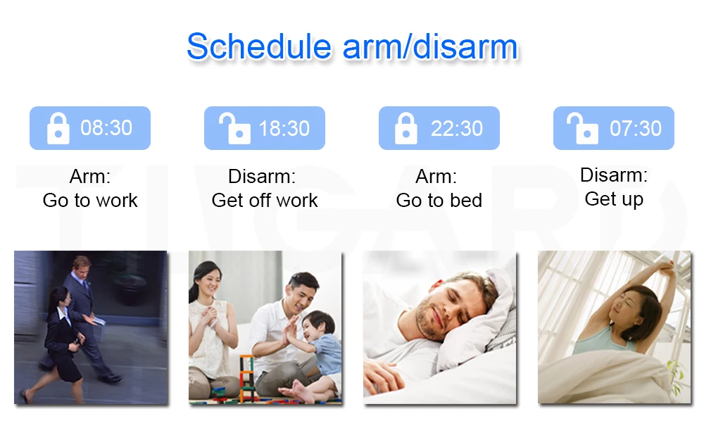 * Установите режим охраны и снятия с охраны в соответствии с вашей повседневной будней.