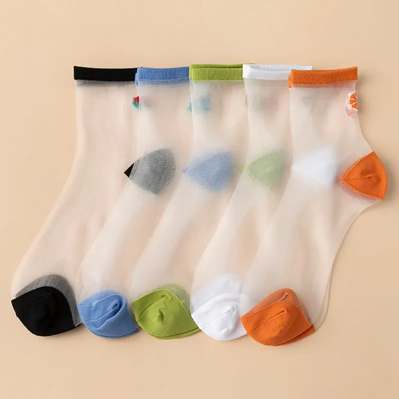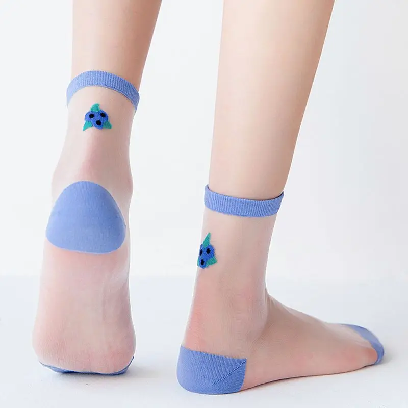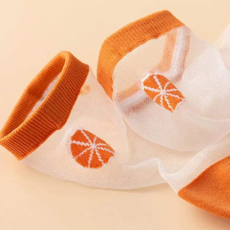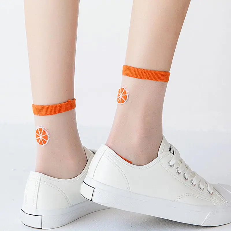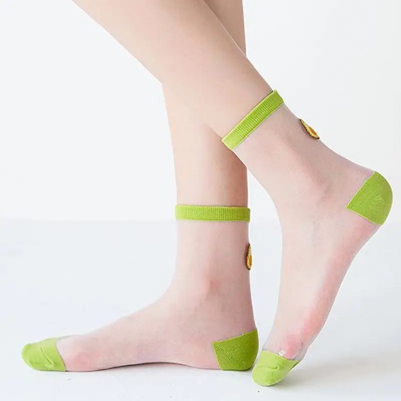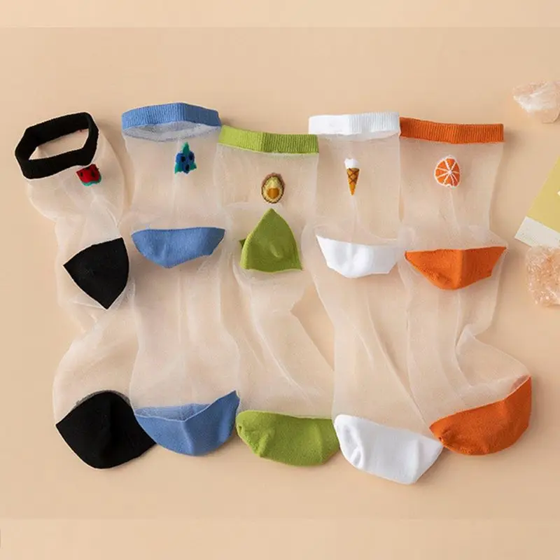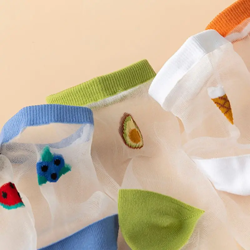 Носки-трубы средней высоты, прозрачная сетка пэчворк, арбуз/черника/авокадо/мороженое/оранжевый фруктовый жаккард.
