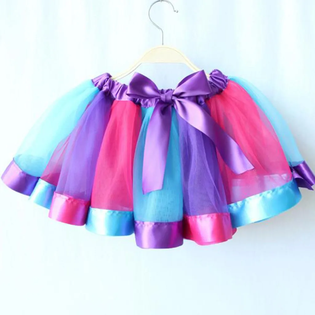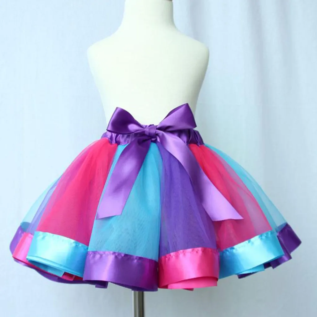 Детская юбка-американка для девочек; Радужная юбка-американка; Юбка с бантом; Платье-пачка; Одежда для танцев