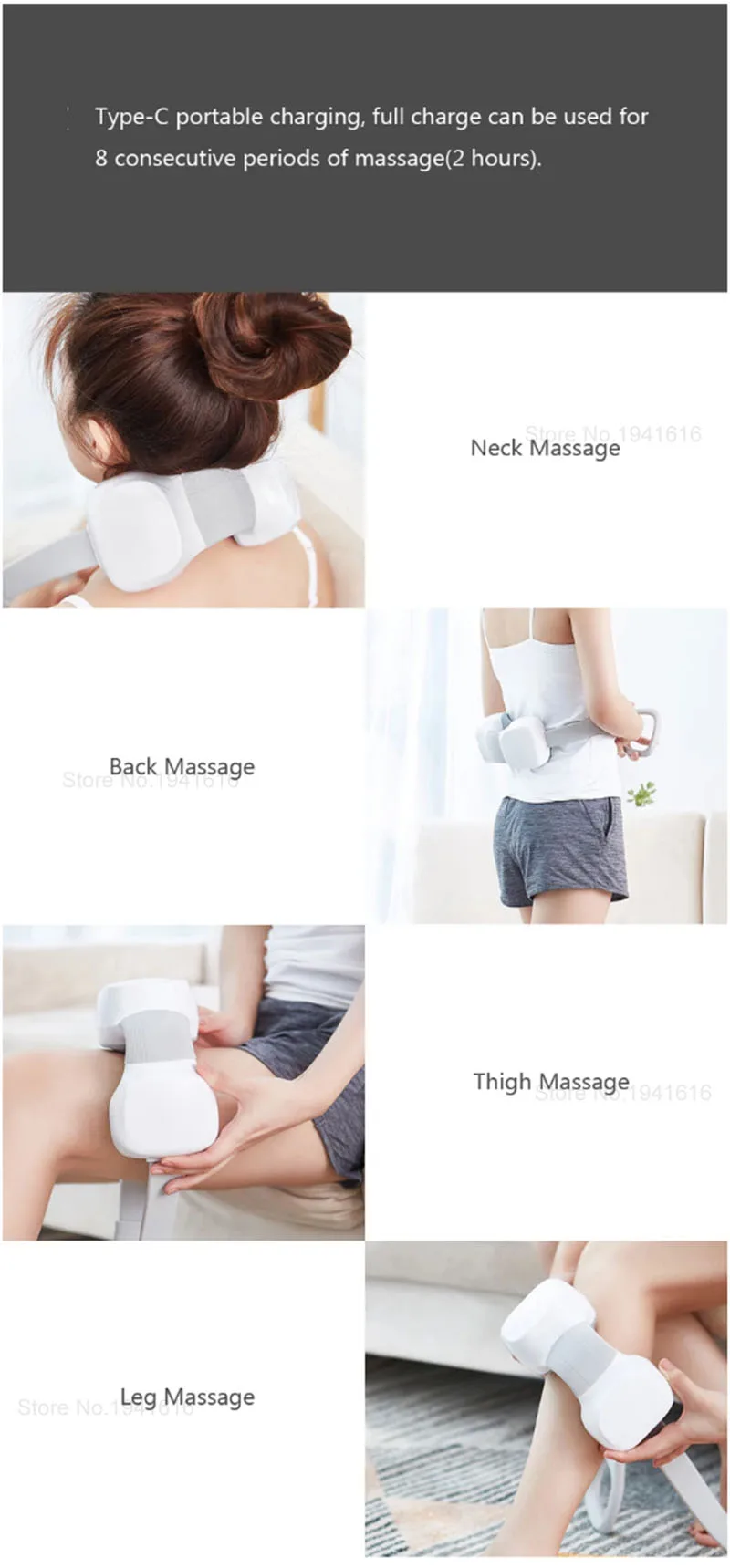 Характеристики: Товар: мини-массажер для шеи Xiaomi Бренд: Xiaomi Модель: M1 Цвет: белый Режим зарядки: Зарядка Type-C Режим: 3 передачи: 65 раз/мин, 75 раз/мин, 85 раз/мин Источник питания: литиевый аккумулятор 2600 мАч Цикл массажа: 15 минут Рабочая температура:-5 ℃-40 ℃ Материал: АБС Размер: 22x10x9 см Вес: 920 г Особенности: 1. Он был разработан специально для шеи, его также можно использовать для других частей тела, которые имеют тот же тип кривизны. 2. Этот массажер для шеи обеспечивает Расслабление напряженных мышц всего за 15 минут и снижает риск дальнейших повреждений с течением времени. 3. Имеет 4 встроенных контакта на Сферический массажер, которые нанесены на кожу и вращаются. 4. Диаметр массажного циферблата 15 мм. Он может создавать постоянную силу из-за контакта с кожей светильник ким большим пальцем. 5. Он оснащен двигателем из чистой меди со скоростью 5800 об/мин, имеет два встроенных адреса и может быть изменен по желанию. 6. Вы можете настроить ритм третьей передачи. Его можно отрегулировать одной кнопкой и совместим с двунаправленным разминанием. 7. Естественный угол наклона массажера составляет 120 °, что идеально подходит к изогнутым формам шеи Благодаря гибкой конструкции, а также другим частям тела аналогичной формы. 8. Портативная зарядка Type-C, полная зарядка используется для 8 последовательных периодов массажа (2 часа). Посылка 1 мини-массажер для шеи Xiaomi 1 х зарядный кабель 1 x Руководство пользователя 1 х сумка для хранения