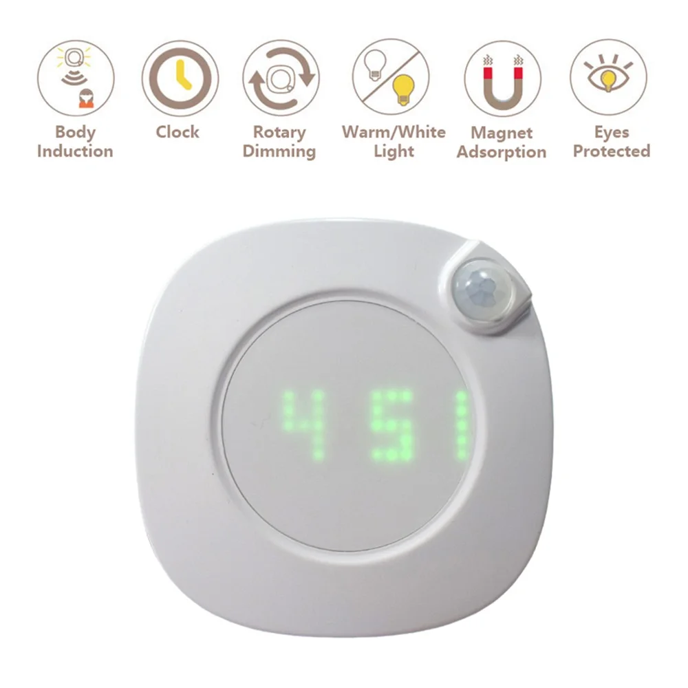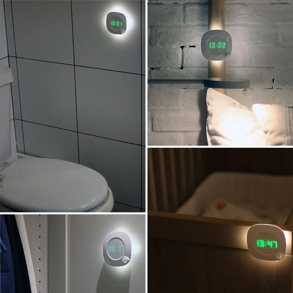 Часы с ночным светильник инфракрасный датчик человеческого тела и светильник датчик для кухни Ванная комната спальня шкаф для ванной комнаты