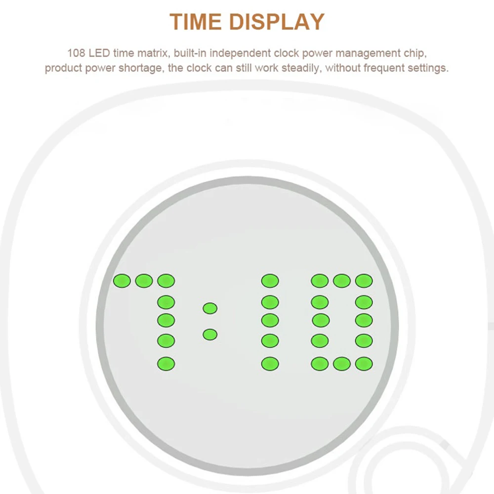 Отображение времени: время будет отображаться, когда светильник включится, и его можно регулировать.