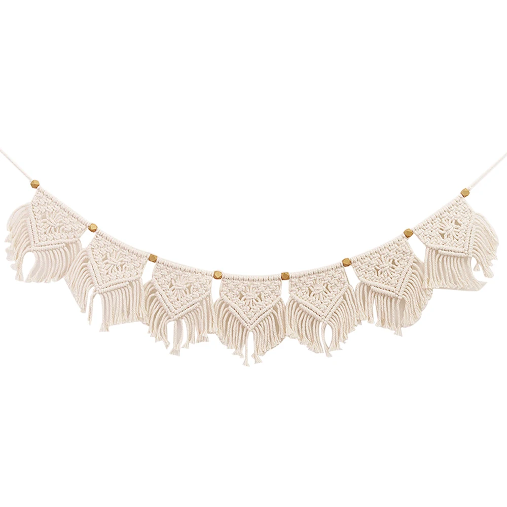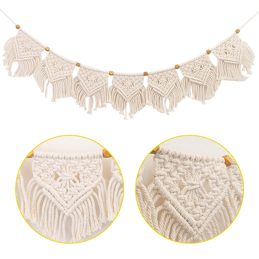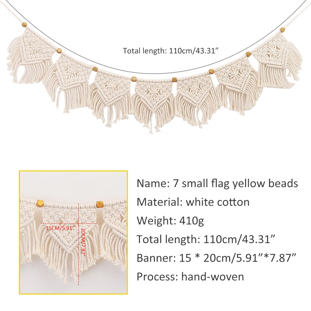 Материал: хлопок и геометрические деревянные бусины. Венок имеет 7 треугольников, и каждый треугольник шириной 20 см. Общая длина составляет 110, а расстояние между каждым треугольником можно легко отрегулировать.