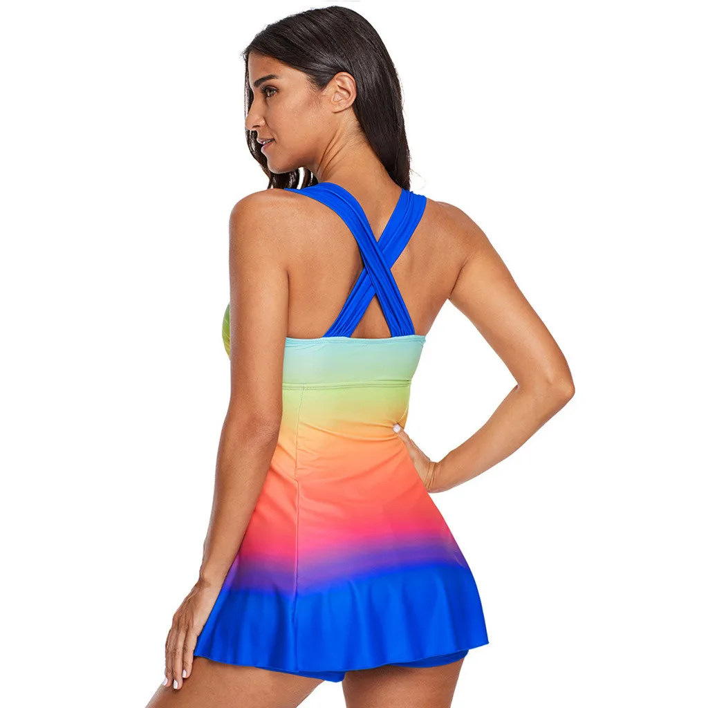 Радужный Дамский танкини, купальный костюм, пляжная одежда, Мягкий купальник размера плюс Biki