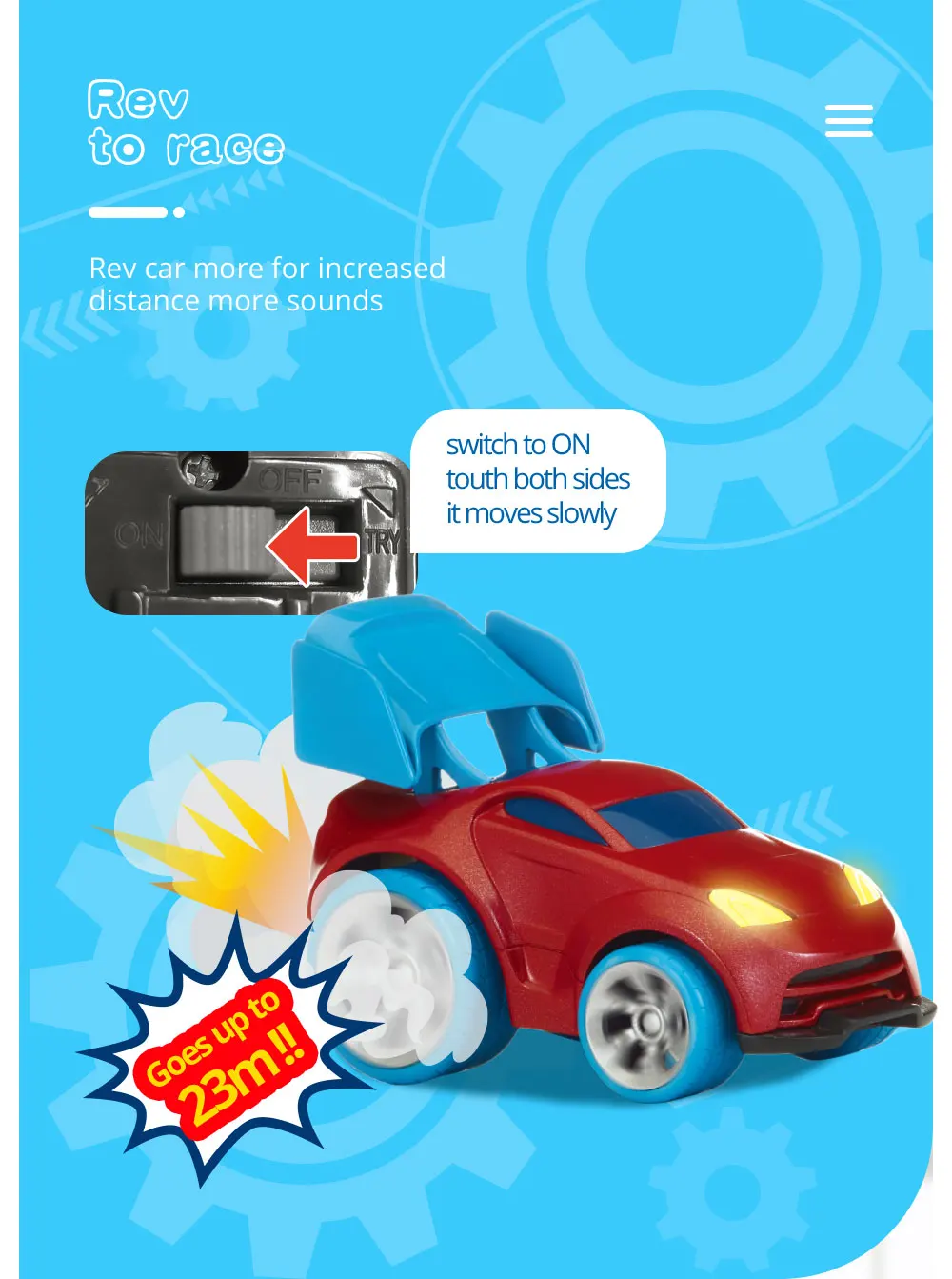 Uzoom Racers зарядка двигателя электрическая игрушка Дистанционное управление автомобиль Rev it Up 75 feets 4 вида стилей, скоростной автомобиль детские игрушки
