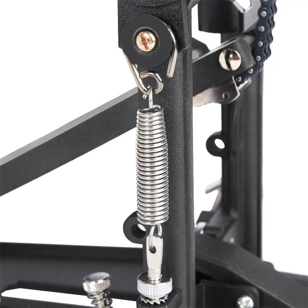 Стабильный и прочный: Наша барабанная педаль имеет двойной цепной привод, который делает педалью более точной и стабильной. Педаль имеет нескользящую сетчатую конструкцию, более стабильную, чтобы избежать падения в процессе протектора.