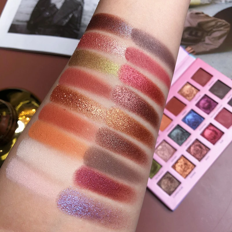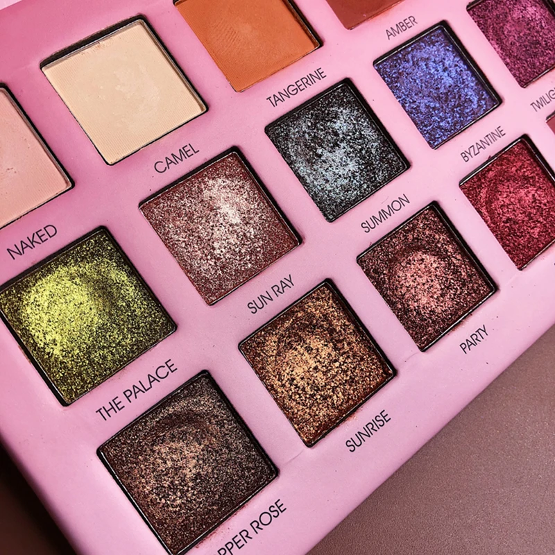 Палитра теней для век изготовлена из 18 цветов гладкого мерцания и матового порошка.