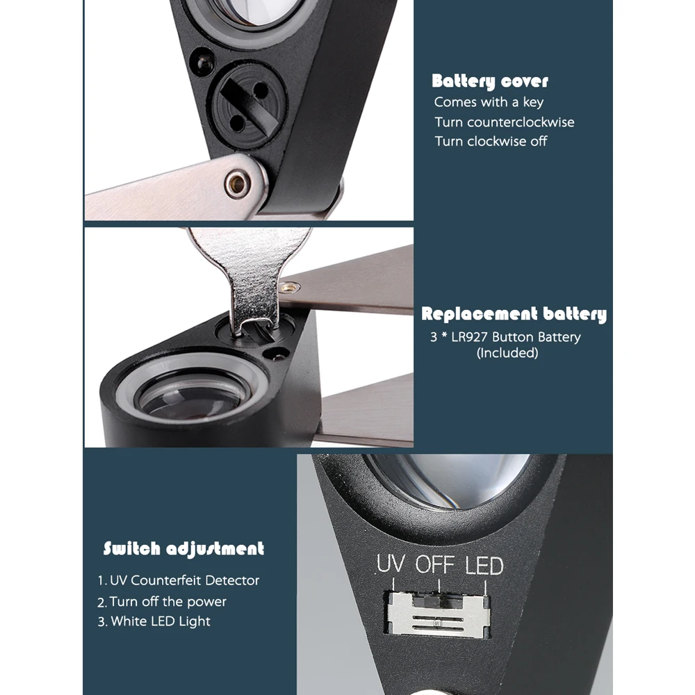 Идеальный инструмент для тщательного наблюдения за ювелиром, бриллиантами, jades, бумажными деньгами и драгоценным камнем.