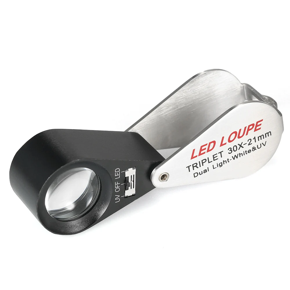 30X 21 мм Ювелирная Лупа с светодиодный светильник. С 6 светодиодный светильник для четкого просмотра в недостаточный светильник.