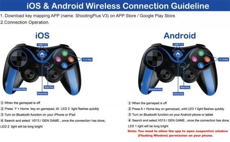 Примечание. В посылка входит руководство пользователя по беспроводному подключению и отображению ключей. Геймпад на 100% совместим с PUBG/ Fotnite, проблема, например, не может одновременно нажимать 2 кнопки и клавиша не работает с настройками, это связано с вашей проблемой настройки игры, пожалуйста, свяжитесь с нами для получения обучающего видео, мы поможем вам решить проблему.
