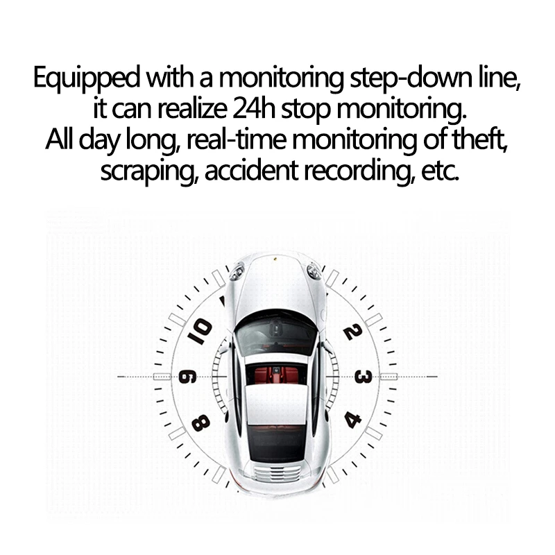 【Циклическая запись и 24 часа парковки монитор 】 циклическая запись автоматически перезаписывает самый ранний сегмент видео, когда память заполнена. Максимальный Поддерживаемый объем памяти 64G 。 этот Автомобильный видеорегистратор поддерживает 24-часовой мониторинг парковки. Включите режим парковки, зеркальная камера будет записывать при обнаружении удара.