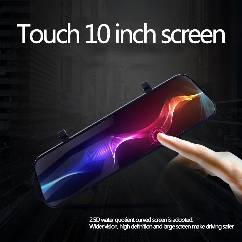 【 1080P 10 дюймов потоковый медиа полный сенсорный экран 】The 1080P потоковый медиа dash cam Популярные Полный sharp цвета IPS сенсорный экран будет синхронизировать дисплей заднего вида просмотр при запуске автомобиля и дать четкое и четкое видео высокого качества с высокое разрешение днем или ночью. Фронтальная камера 1080P записывает видео высочайшего качества днем и ночью. Поддержка многоязычного переключения.