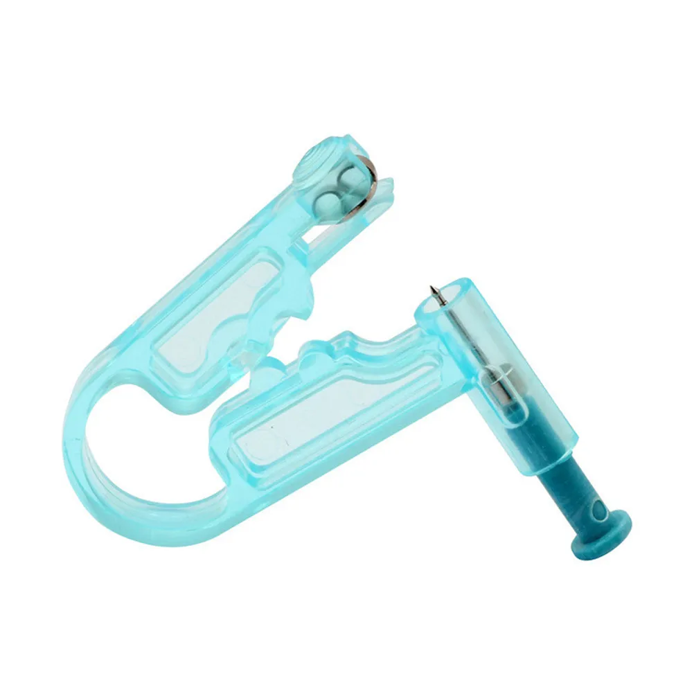 3. Откройте одноразовую посылка с ушками, как показано на рисунке, удерживайте устройство для пирсинга уха и обратите внимание на нажатие большого пальца на одной стороне прессового стержня для легкой силы.