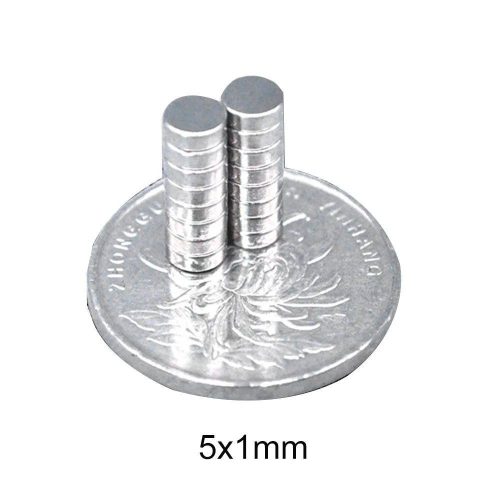 50~3000pcs 5x1 Mini Small Round Magnets 5mmx1mm Neodymium Magnet strong 5x1mm Permanent NdFeB Magnets Disc 5*1 electro magnetics Specifications: Material Quality : Neodymium magnets / NdFeB Type Rating: N35 Plating: Nickel + Copper + Nickel Triple Layer Plated Certification:RoHS passed Shape: Circular Color:Silver Tolerance: 0~1mm Max Operating Temperature: 80 Celsius degree / 176 Fahrenheit degree Magnetic pole direction:Axially magnetized / Poles on Flat Ends Applications: 1.Acoustic field: the speaker, receiver, microphone, alarm, stage audio, car audio and so on. 2.Electronics: permanent magnetic actuator vacuum circuit breakers, magnetic relays, meter, meter, sound meter, a reed switch, sensors. 3.Electrical field: VCM, CD / DVD-ROM, generators, motors, servo motors, micro-motors, motors, vibration motors. 4.Machinery and equipment: magnetic separation, magnetic crane, magnetic machinery. 5.Healthcare: MRI scanners, medical equipment, magnetic health products and so on. 6.Other industries: magnetized Wax, pipe descaling, magnetic fixture, automatic mahjong machine, magnetic locks, doors and window magnetic, magnetic luggage, leather magnetic toys, magnetic tools, gifts and packaging.