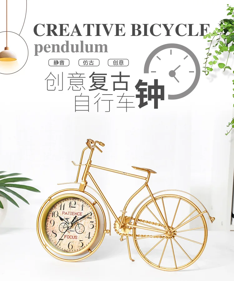 Новые настенные часы, винтажные металлические трехколесные часы, золотые часы из кованого железа для велосипеда, бесшумные часы, настольное украшение, настольные декоративные часы