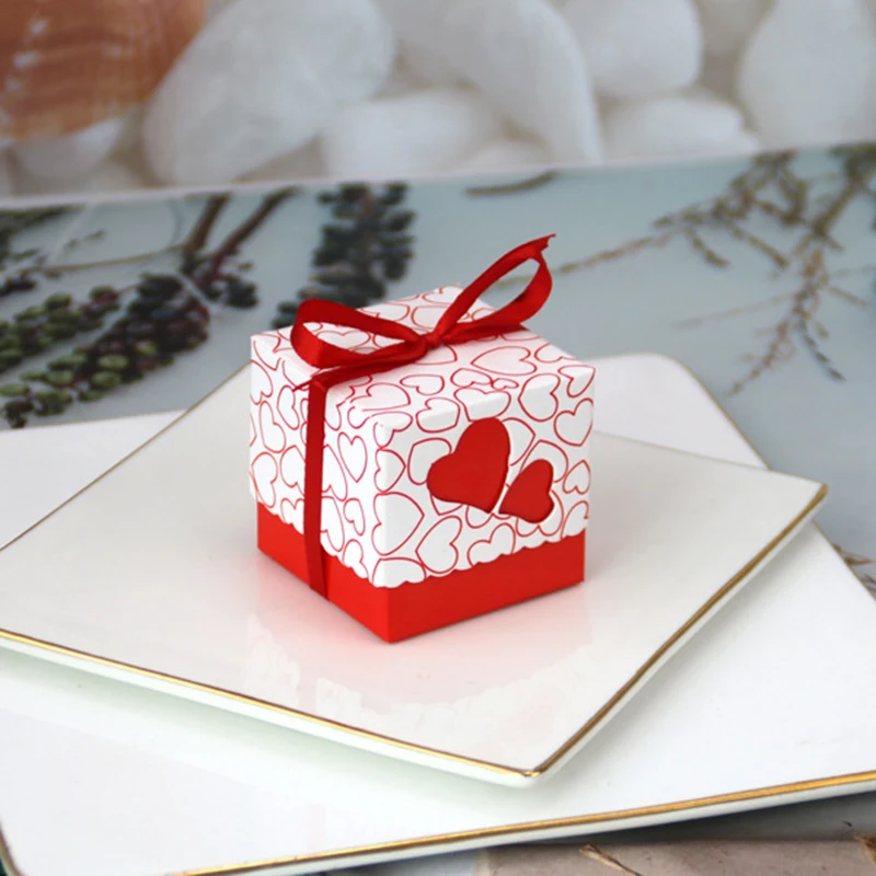 50/100 шт «любящее сердце» конфетная коробка контейнер для сладостей пользу и подарочные коробки с лентой для крещения, дня рождения, вечерние свадебные украшения