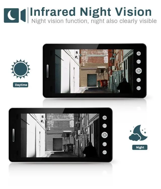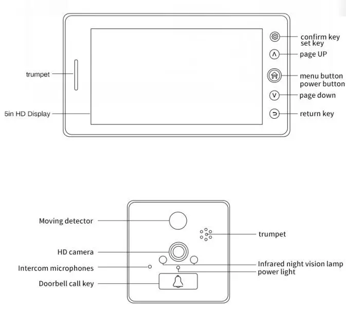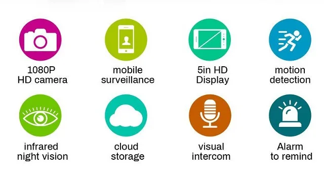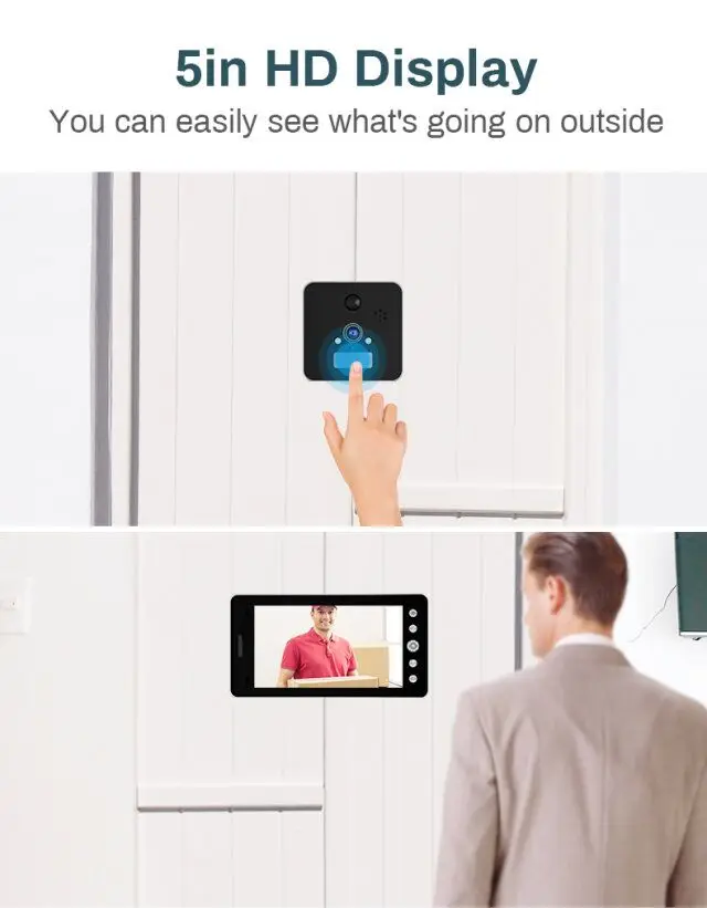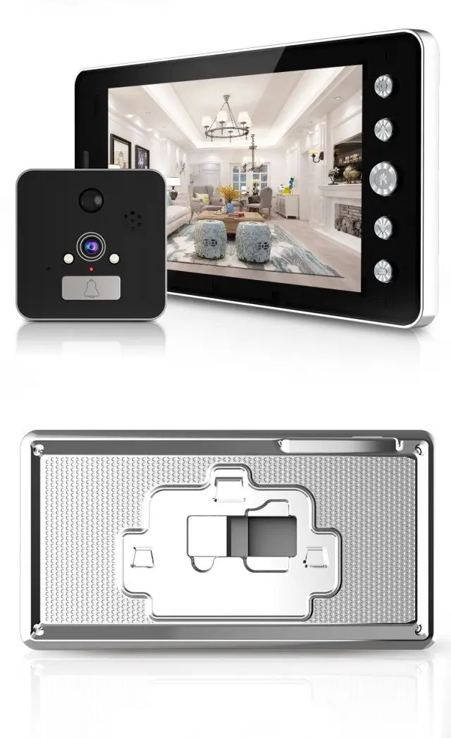 1. Wi-Fi подключение и HD глазок, удаленный домофон, подходит для IOS и android смартфонов. 2. 5 дюймов высокой четкости ЖК-дисплей экран 3. HD 1080P изображение ультра-низкое энергопотребление дизайн 4. 2 шт. ИК-светодиодов, поддержка 2-канального аудио с шумоподавлением 5. Автоматическое снятие изображения и видеозапись при нажатии на дверной Звонок 6. Датчик движения PIR 7. Поддержка макс. 32 Гб tf-карты для сохранения записи видео (не входит в комплект) 8. Простая установка (нет необходимости в кабеле), просто подключение wifi