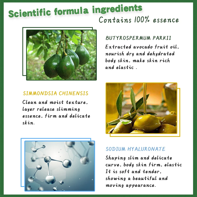 Извлекаемое фруктовое масло авокадо, питает сухую и обезвоженную кожу тела, делает кожу богатой и эластичной.