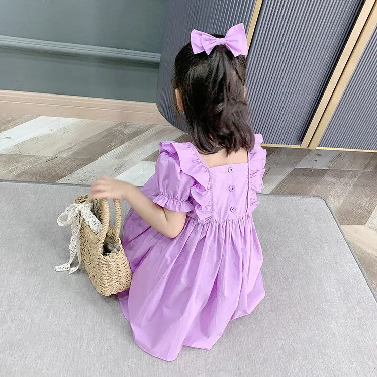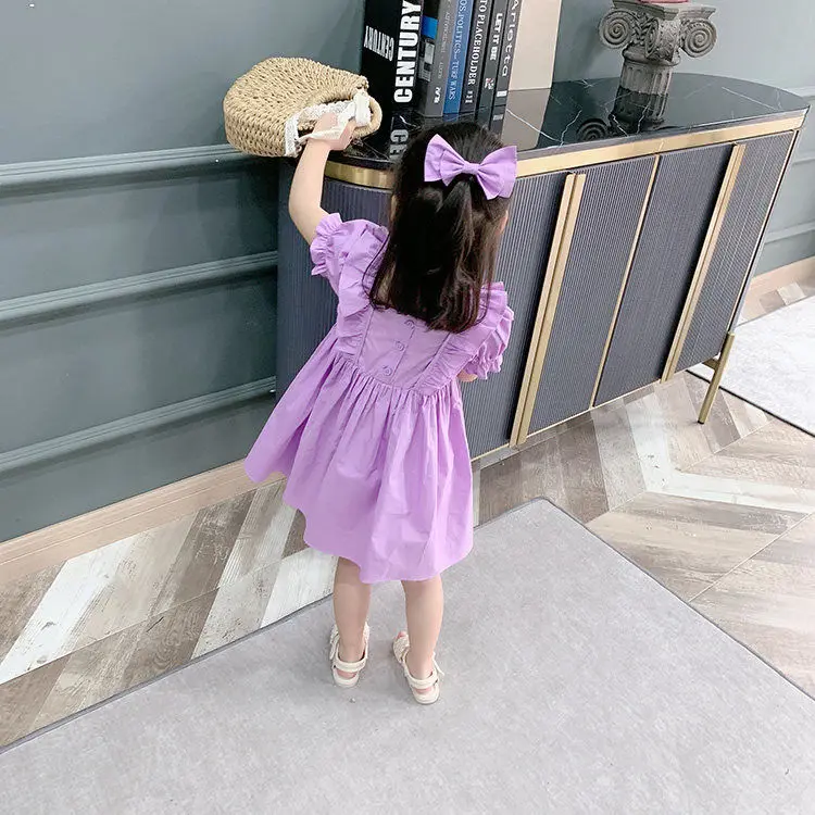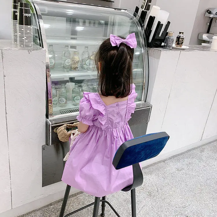 Коллекция 2021 года, Летнее Детское платье принцессы для маленьких девочек фиолетовое милое детское платье с оборками и квадратным воротником, с пышными рукавами, вечерние платья на свадьбу