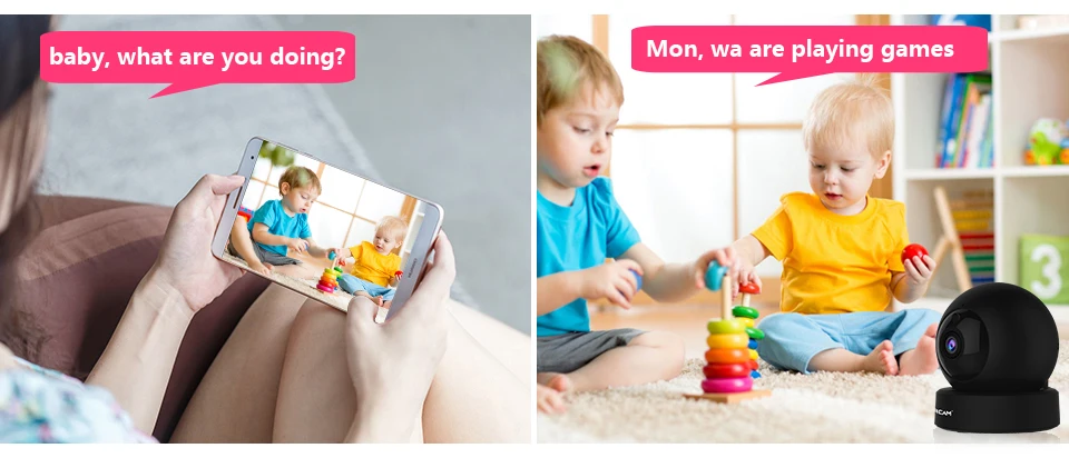 Когда вы получаете напоминание о тревоге, когда ваш ребенок плачет, вы можете поговорить с ним/она и успокоить его/она через двухстороннее аудио камеры в реальном времени, не бегая вперед к ребенку. Когда вы работаете в офисе или на большом расстоянии от дома, вы можете общаться с ребенком через камеру, когда вы пропустите его.